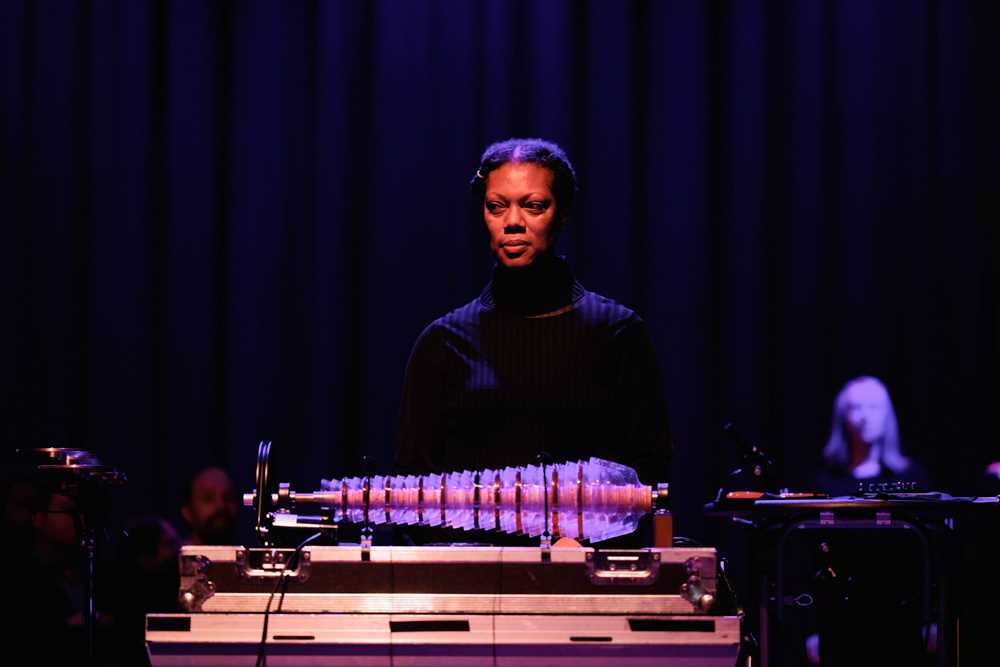 Med håndholdte høyttalere og feedback-loops maner Camille Norment fram en hypnotisk miks av bevegelse og lyd i sin nye komposisjon for ni stemmer og en glassharmonika.