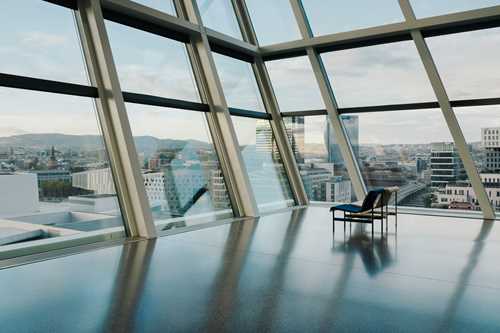 On the ground floor you will find our café, where you can enjoy great coffee and freshly baked croissants inside, or shellfish and fresh sourdough bread on the terrace. On the 12th floor you will find our bistro that leans on continental traditions with a smile, with seasonal ingredients on the menu. The view from our roof terrace next to the bar on the 13th floor can be enjoyed with something refreshing in your glass.